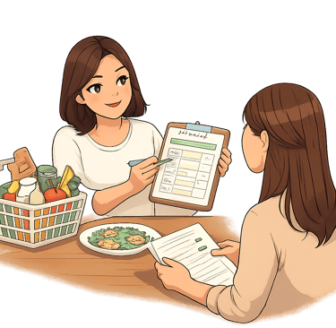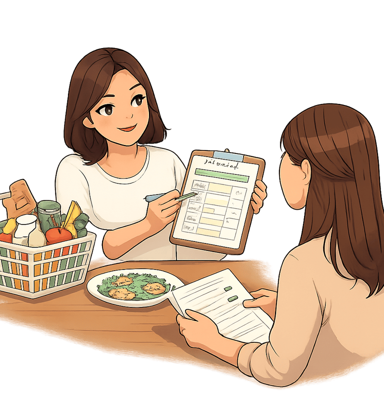 Transformo la teoría en práctica: platos reales, recursos, organización, menús flexibles, anticipación. Sin perfección, sin obsesión. Trabajo creencias, entorno, y tolerancia al “error”. Aquí la persona empieza a sentir autonomía.